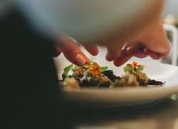 Matsalen på Rastaholm erbjuder en varierad meny med läckra rätter.