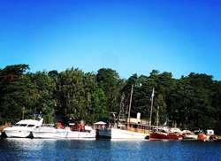 Här lägger ni tryggt till vid någon av de 18 Y-bomsplatserna eller med hjälp av fasta mooringlinor som gör att ni slipper trilskas med dragg och ankare.