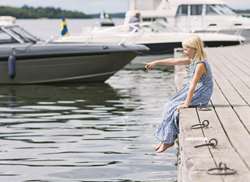 ligger mellan 1,7–2,7 meter. Eluttag finns vid servicehuset, elkabel behöver man själv hushålla med. I anslutning till gästhamnen hittar ni även dricksvatten, tömningsstation för båtlatrin, toaletter, dusch samt ett minilivs med enklare servering som är öppen under högsommaren.