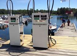Vi har blyfri 95,98 RME-fri diesel för båtar (minskar risken för mikrobiella tillväxt, algbildning, i dieseln) och alkylat från pump och på dunk. Vi har gas från Primagaz.