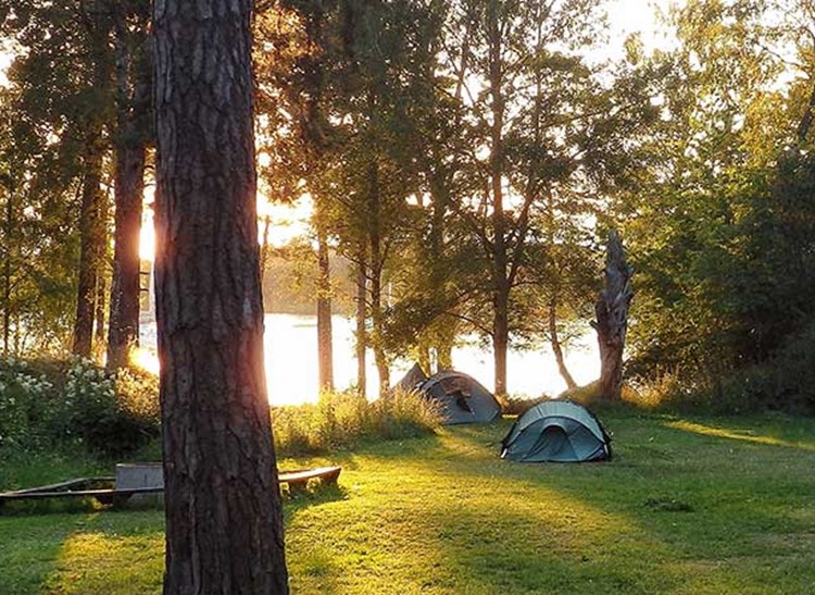 På Utö finns en av skärgårdens finaste campingplatser. Precis vid havet, med en vacker vy över södra hamnen och Mysingen – och en alldeles egen sandstrand i direkt anslutning till campingen!