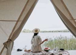 Du väljer om du vill bo på torra land eller vaggas till sömns på en egen flotte. Oavsett vilket får du en egen kanot med flytvästar att använda under hela din glampingupplevelse och ditt morgondopp tar du direkt utanför tältet. Frukostskorgen levereras utanför ditt tält på morgonen och en god middag intas på hotellet när du bokar vårt glampingpaket.