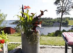 De fem rummen i röda ”Officersbostället”, vår äldsta byggnad från ca 1724 har direktingång från terrass och egna utemöbler utanför varje rum.