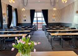 Vi har sex mötesrum, en lounge och en egen biograf som rymmer upp till 100 gäster – perfekt för konferenser, kick‑offs och festliga tillfällen med personlig skärgårdskänsla