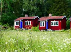 I anslutning till pensionat Västergården ligger fyra stugor med separat duschstuga. Alla stugorna har sjöutsikt och en gemensam stor gräsmatta med utemöbler och grillmöjligheter.