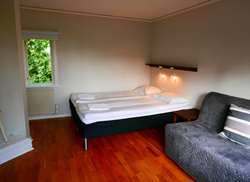 I stugorna finns fyra bäddar i varje, fördelat på en dubbelsäng samt en bäddsoffa (140 cm).