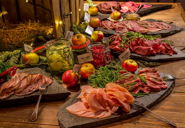 Vårt klassiska julbord tillagas med omsorg i vårt eget kök och med råvaror av högsta kvalitet. Den generösa buffén bjuder på ett brett urval av smaker – från sill, lax och kallskuret till vällagade varmrätter, frestande desserter samt ett stort utbud av vegetariska och veganska alternativ.
