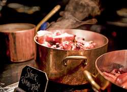 På bordet finns alla julens favoriter – sill i flera varianter, nygräddade köttbullar, krämig Janssons frestelse och våra uppskattade laxfenor. Utöver det presenterar vi i år spännande inslag som pepparots- och äppelgravad lax, som ger en frisk och modern touch till de välkända rätterna. Måltiden rundas av med ett rikligt dessertbord, fyllt av söta godsaker att njuta av länge.