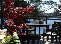 Utanför Matsalen ligger terrassen med fantastisk utsikt över Kanholmsfjärden och vy över all mysig fritidsbåtstrafik.