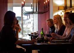 Kvällen och restaurangen får en mysig stämning med tända ljus. Tempot blir lugnare och innan middagen kan man koppla av med lite mingel i baren. Vi rekommenderar självklart kvällens trerättersmeny med ett passande vin, men ni väljer givetvis själva vilka tallrikar ni vill ha.