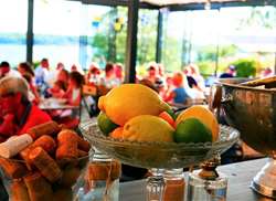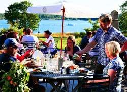 Välkommen till värdshuset och vår inglasade restaurang med utsikt över Lidöfjärden! Restaurangen har öppet sommartid mellan midsommar till mitten av augusti kl. 12.00-15.00 och middag från kl. 17.00.