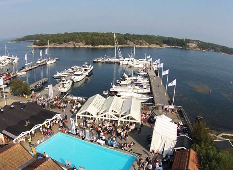 Med härlig skärgårdsidyll med utsikt över hamnen öppnar uteserveringen till midsommar och