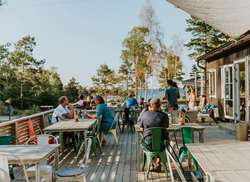 Vår restaurang ligger nere i viken med utsikt mot havet. Ta plats på den mysiga uteservering och beställ något svalkande eller njut av en middag från grillen..