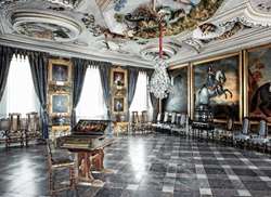 Inuti slottet finner du unika målningar, barockmöbler och imponerande konsthantverk, inklusive en glaskrona från 1672 som har överlevt tidens prövningar.