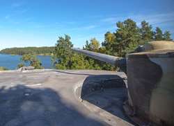 Siaröfortets kanoner pekar mot Furusundsleden där Finlandsfärjorna idag sveper förbi. Här befarade man att ryssen skulle komma efter första världskrigets utbrott och man byggde ett fort som skulle bromsa upp fiendens angrep och ge huvudstaden chans att mobilisera. Flera hundra man förlades i anläggningen som döljer sig i berget och idag är museum. Man skulle se men inte synas.