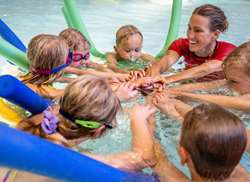Gustavsbergsbadet erbjuder simskola från 3 månaders ålder - Småfiskarnas och från 5 år Sjöstjärnornas Simskola. Här är varje elev en stjärna och målet är att bli en trygg och säker simmare. Badets simlärare har särskilt fokus på säkerhet och pedagogik vilket är en bra start för att bli säker vid vatten och bryggor.
