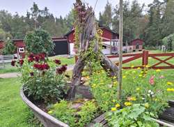 Barnen bor i vår fina stuga endast ca 10m från stallet.