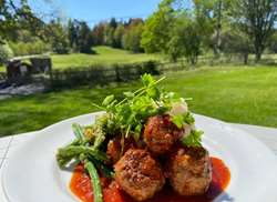 Här hittar du kanske inte landets snabbaste greener men en utmanande välskött anläggning med driving range, övningsområde och en mysig servering med hembakta kakor och lättare luncher.