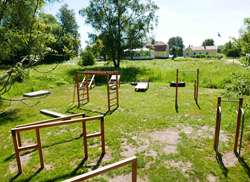 Vid värdshuset finns en lekplats med gungor, hinderbana, fotbollsspel, kubb, boule mm. Från uteserveringen kan du lätt övervaka barnens lekar.