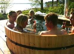Ett par hundra meter från värdshuset hittar ni vår bastu och två stycken badtunnor, alldeles i närheten av havet.