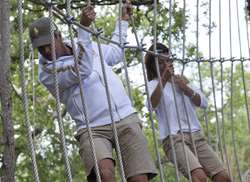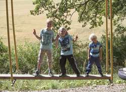 Vi har byggt en hinderbana i skogen som består av ett antal aktiviteter i olika svårighetsgrad. Banan är byggd i en fantastisk skogsdunge där du och din familj, dina vänner eller ditt företag inte bara får spänning och aktivitet utan också en naturupplevelse. För de minsta har vi byggt några kojor och älgar att klättra på och vi vill gärna ha hjälp att bygga fler kojor i skogen… För de äldre barnen och vuxna finns det även en parallellbana som ni kan utmana varandra på.