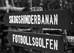 spelas med fördel med koncentration och vinnarskalle. Vi har två fina niohålsbanor anlagda som riktiga golfbanor med bunkrar, dammar och hinder, med lätt och svår tee på några hål, så att alla kan utmana varandra. Det gäller att tänka taktiskt, vara koncentrerad och inte överskatta sin förmåga att sparka långt och rakt… Hålen är från ca 20 meter och upp till 120 meter långa och alla har olika svårigheter som ska övervinnas innan bollen slås i hål – men du, lämna dubbskorna hemma, inga glidtacklingar!