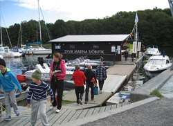 Båtplatser erbjuds sommar som vinter och här finns gästplatser, sjömack, hyrbåtar och tillbehörsbutik året runt.